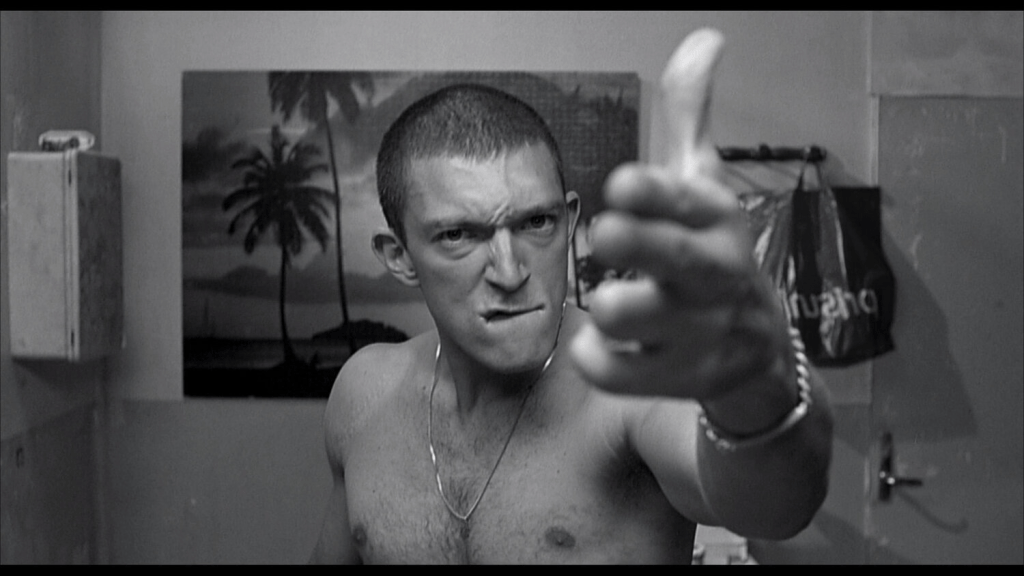 The film is entirely in black and white to underscore just how much hopelessness and gloom pervades the immigrant French suburbs of the 90s, situated firmly on the wrong side of the social divide. Graffiti replete with ”F*ck the police” messages grace many a brick and metal pane in the background. In an atmosphere of much fraternité and very little égalité, three friends of Abdel, Vinz (Vincent Kassel), Hubert (Hubert Koundé) and Saïd (Saïd Taghmaoui), have-nots of Jewish, African and Arab descent, respectively, are seen dealing with an aftermath of a fierce bout of riots. In fact, Vinz is baying for blood, itching for an opportunity to stick it to the man and to answer violence with violence. The atmosphere in the cité itself is akin to a powder keg, with the slightest of insults being capable of triggering massive retaliation on both sides, with the police being nervously vigilant for the tiniest bit of provocation.